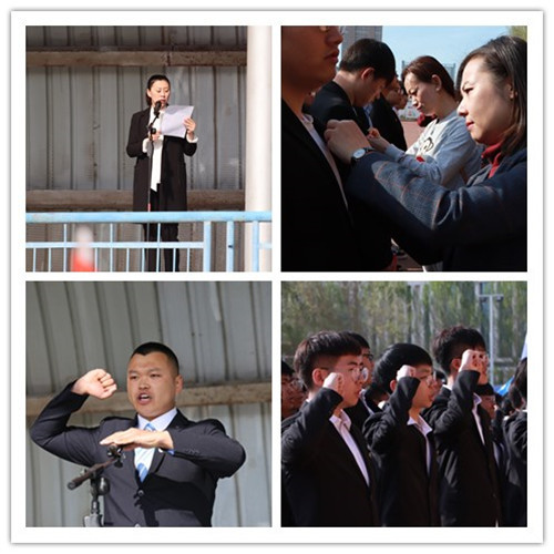 宣誓仪式上,校团委书记姜琳宣读了《关于接收何跃千等123名学生加入中国共产主义青年团的决定》;学校领导、学生工作领导、团干部为新发展团员佩戴团徽并授发团章;成功考取东北林业大学研究生的退役士兵洪运来带领新团员宣誓,老团员重温入团誓词。