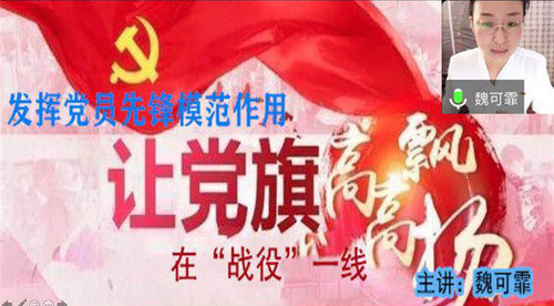 校长助理兼组织部部长魏可霏同志做了题为《发挥党员先锋模范作用,让党旗高高飘扬在“战疫”一线》的党课。从“深刻领会什么是共产党人的先锋模范作用、战“疫”一线对党员先锋模范作用的要求、战“疫”一线如何发挥党员先锋模范作用、战“疫”打响,华德迅速行动”四个方面进行了讲解,带领党员们回顾了我校战役以来快速反应,积极应战,坚决守护师生生命与健康,维护学校安全稳定,推进各项教育教学工作高质量开展富有成效的做法与成果。她强调,疫情就是命令,旗帜彰显担当,要求广大党员干部继续充分发挥党员先锋模范带头作用,自觉同以习近平同志为核心的党中央保持高度一致,为坚决打赢疫情防控阻击战而努力奋斗!