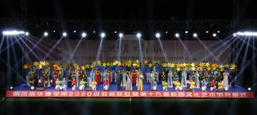9月30日晚,“问渠映明月 中华家国情”哈尔滨华德学院2020级迎新联欢暨第十九届校园文化艺术节开幕式在体育场举行。