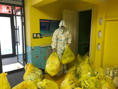 68名党员教师志愿者在党组织的号召下投身临时隔离区服务工作。他们24小时坚守临时隔离点,累计服务时长77568小时,每天分时段测量体温、无死角消杀、早中晚送餐、生活垃圾收集……每次交接班时脱下隔离服,衣服已全部湿透,双手也被汗水泡到发涨。即便如此,当看到学生们在隔离观察区生活学习平稳有序时,他们面露微笑,无怨无悔。