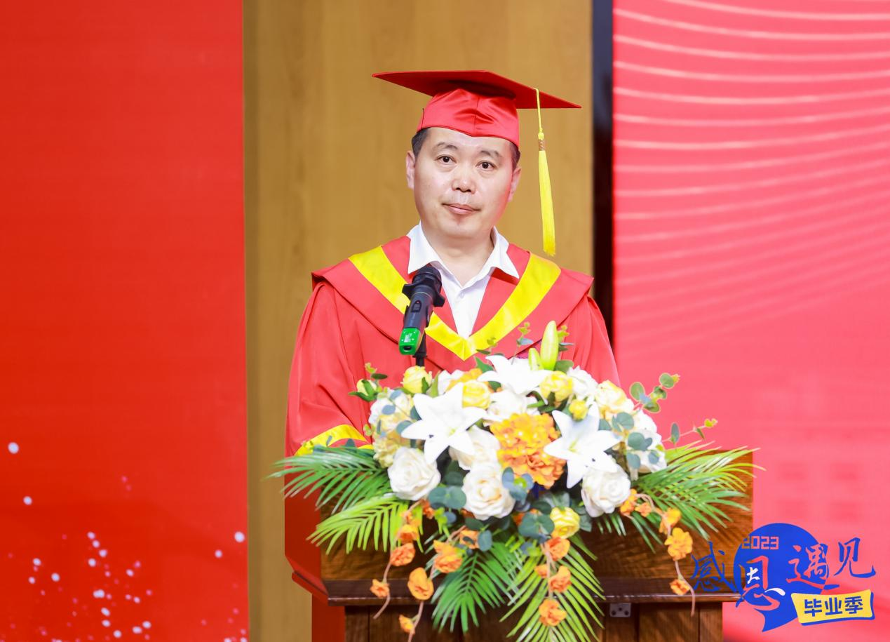 校长助理魏可霏向全体毕业生表达美好祝愿:“新时代的青年,朝霞般美好的理想在召唤你们,希望你们谨记习近平总书记嘱托,继承和发扬吃苦耐劳、自力更生、艰苦奋斗的精神,厚植家国情怀、涵养进取品格,以奋斗姿态激扬青春,不负时代、不负华年。愿你们以卓越的智慧,坚强的意志,大无畏的精神,不断开拓,不断奋进!”。