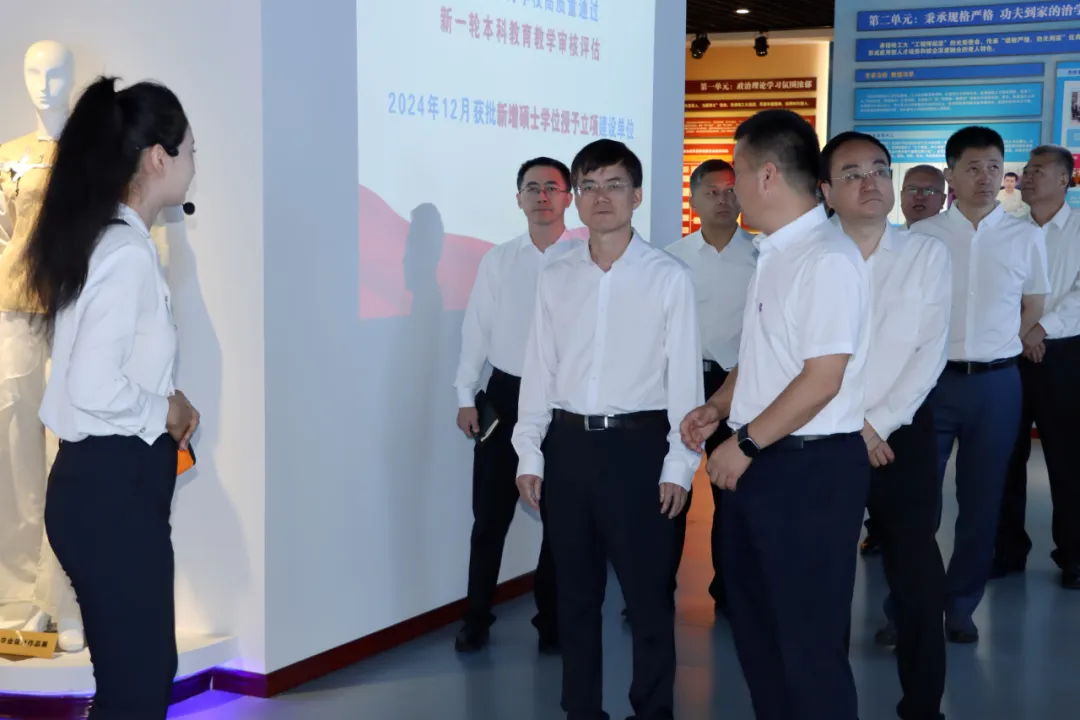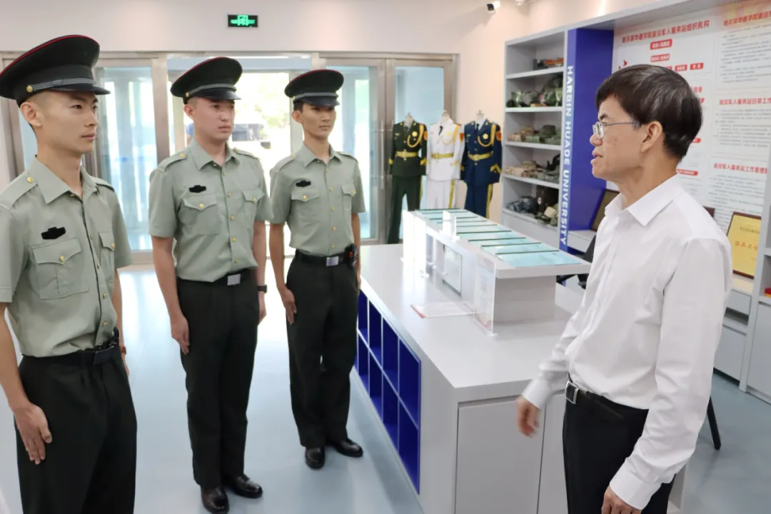 调研组一行先后参观了哈尔滨华德学院国防教育广场、校园文化馆和退伍军人服务站等场所,实地察看学校在国防教育、双拥文化培育、退役军人服务保障等方面的工作开展情况。调研期间,哈尔滨华德学院校长李长威向调研组详细介绍了学校发展历程和办学特色。李长威校长表示:“作为教育部授予的‘全国国防教育特色学校’,学校始终将国防教育融入育人全过程,多平台、多抓手开展常态化国防教育活动,切实增强学生国防观念和爱国情怀。目前,哈尔滨华德学院共有现役学生209人、退役士兵学生305人、教师25人。学校针对退伍军人构建了从技能提升到就业推荐的全程规划及帮扶体系,全力帮助他们顺利转型、高质量就业。”在介绍办学根基时,李长威谈到,学校传承哈尔滨工业大学的优良办学传统,坚持“985基因 工程师摇篮 500强就业”的应用型人才培养定位,充分发挥工科优势,为服务龙江振兴发展和国防现代化建设培养输送高素质应用型人才。