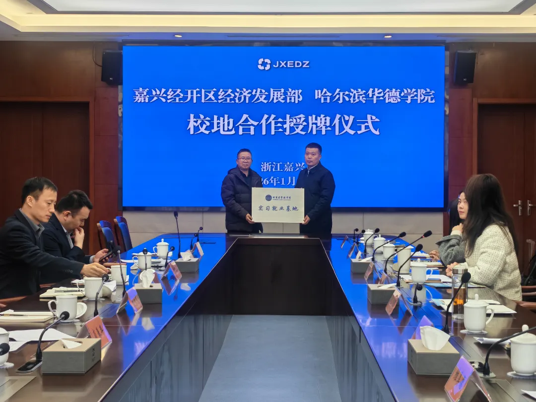 1月22日至23日, 校长李长威一行赴浙江嘉兴经开区开展校政企深度对接,与园区管委会及新能源、汽车电子等领域6家重点企业共同举行洽谈会。 双方围绕区域产业发展需求、人才培养标准、实习实训落地等核心议题深入交流,达成多项合作共识,正式签约共建“哈尔滨华德学院实习就业基地”。该基地的建立将搭建起“人才培养-实习实践-就业输送”一体化平台,进一步完善学校长三角区域就业网络,为校地企协同育人注入新动能。