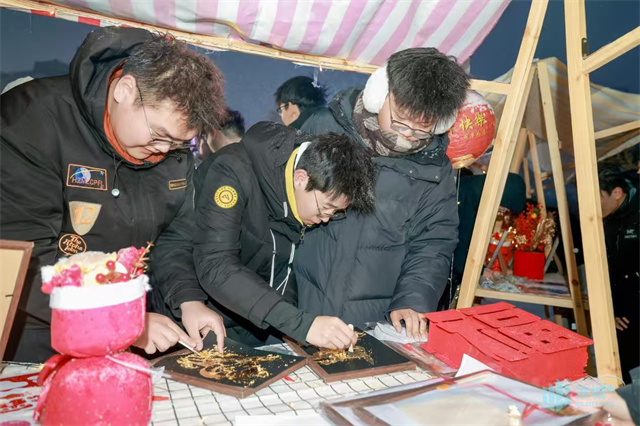 作为本次活动的重头戏,国家级非物质文化遗产——打铁花在哈尔滨华德学院首次惊艳亮相。与常规邀请专业团队表演不同,此次打铁花由华德学子结合专业特色,在确保安全的前提下自主策划、亲手操作。随着同学们奋力击打,千万朵金色的铁花如流星雨般划破夜空,又如金色瀑布倾泻而下,璀璨夺目的景象引得现场师生阵阵惊呼。这场由学生自主完成的非遗技艺展示,既是对古老技艺的致敬,也彰显了华德学子勇于实践、敢于创新的精神风貌。