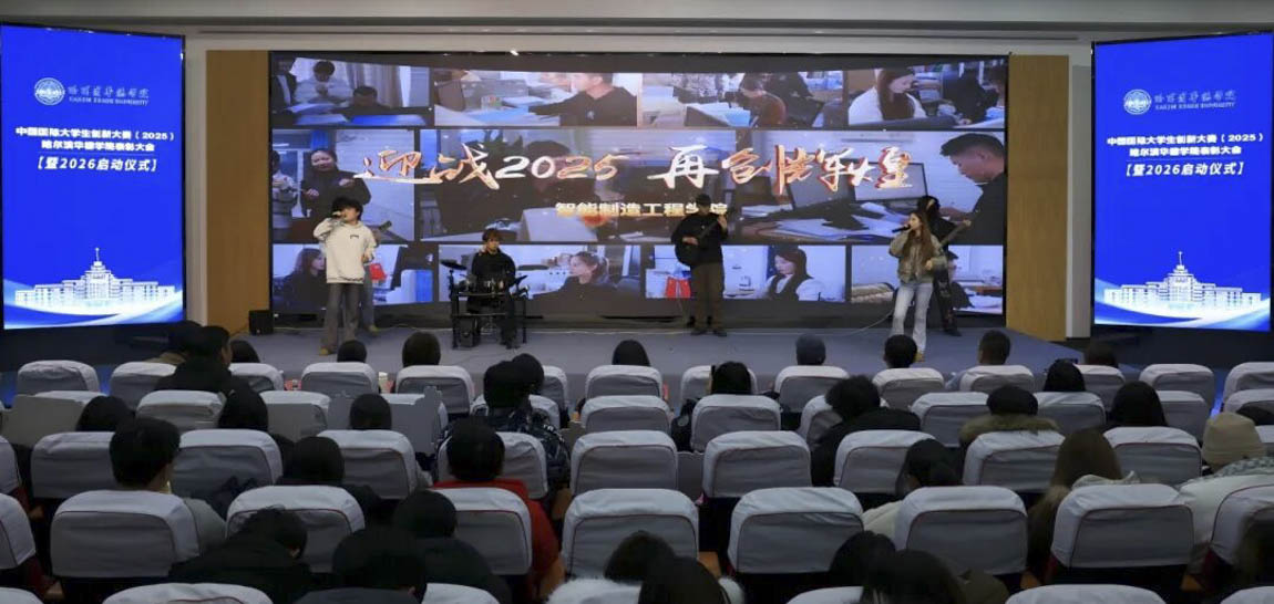 为总结中国国际大学生创新大赛(2025)参赛成果,表彰先进典型,凝聚创新创业力量,全面启动2026年赛事备赛工作,12月9日,哈尔滨华德学院举行中国国际大学生创新大赛(2025)表彰大会暨2026启动仪式。哈尔滨华德学院副校长张艳、创新创业中心主任王洪枢、各学院院长及副院长、获奖师生代表和各学院学生代表参加本次大会。