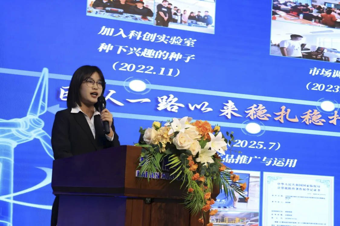 创新创业中心主任王洪枢宣读了中国国际大学生创新大赛(2025)哈尔滨华德学院获奖名单。自本届赛事启动以来,学校统筹推进各项工作,广泛开展宣传动员,实现各年级、各专业全覆盖,报名项目达1623个,覆盖6700余名学生,涉及人工智能、大数据、新能源、冰雪经济等多个前沿领域。