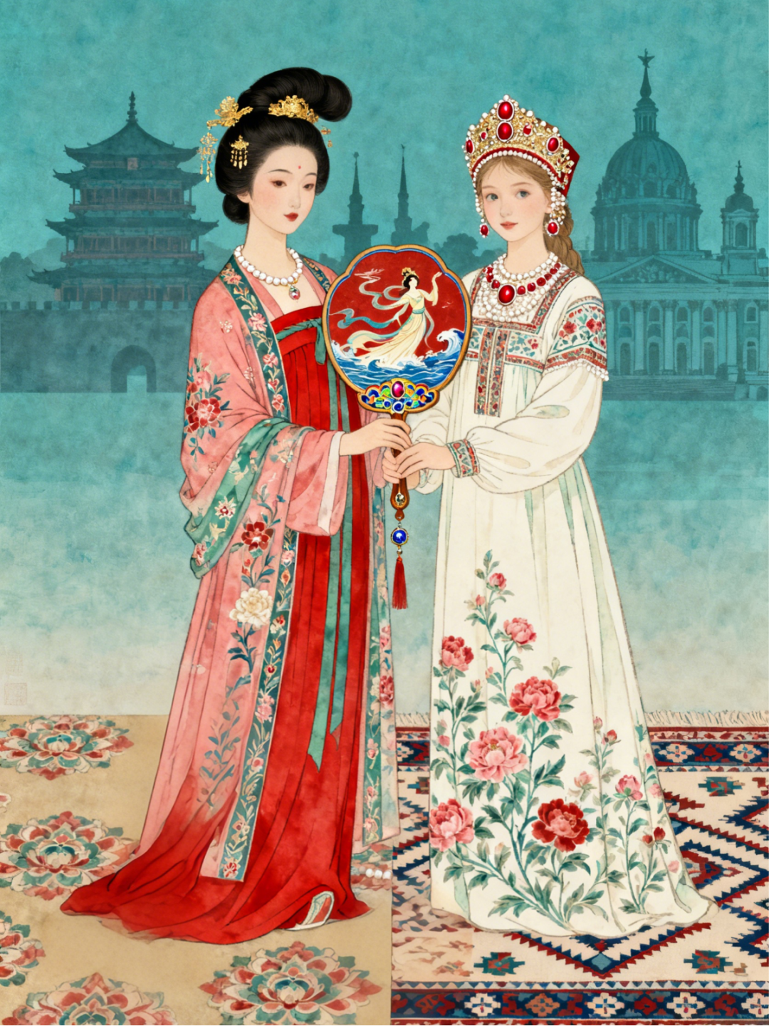 △ 学生组 二等奖获奖作品《中俄文化“熊”融之美》《唐韵俄风·执扇相契》