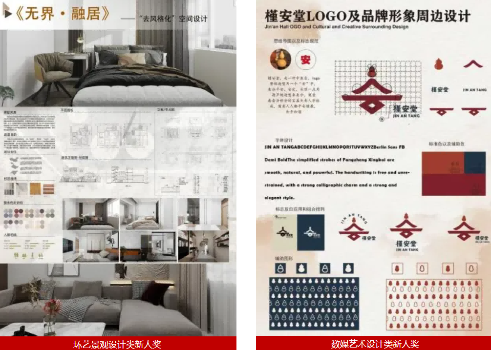 本届大赛包含主题赛道、自由赛道,共收到参赛作品2000余件。 经专家评审委员会初评、复评,哈尔滨华德学院共计55个作品获奖。 主题赛道《葫承技艺》荣获金奖,《山野的味道》《染迹》荣获铜奖,《青花漫溯·景德镇瓷器展厅设计》《人生何处不香逢》《second酒吧设计》荣获优秀奖、《巷语慢流》荣获新人奖。自由赛道《亦金江織》等12个作品荣获金奖、《顺酪小契》等13个作品荣获银奖、《 中古余韵·现代新生-基于复古元素与当代功能的空间叙事研究》等9个作品荣获铜奖、《围居——福建土楼文创设计》等6个作品荣获优秀奖、《“槿安堂 ” 中药品牌形象设计》等8个作品荣获新人奖。