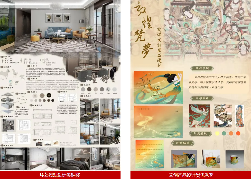 获奖作品涵盖服饰服装、环境艺术、数字媒体等多个专业方向, 师生团队深入挖掘龙江非遗资源,将传统美学符号与现代设计语言、数字技术有机融合,创作出一批兼具文化厚度与时代气息的创新作品。 这些成果不仅是对非遗文化的创造性诠释,也是艺术与传媒学院长期坚持“以文化人、以赛促创”教学理念的生动实践。