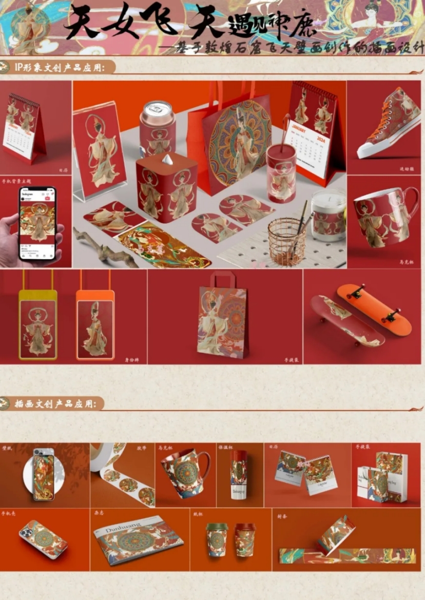 △ 学生组金奖作品《 “凝晶”哈尔滨沉浸式冰雪文化体验展厅空间设计 》《 天女飞天-遇见神鹿 》