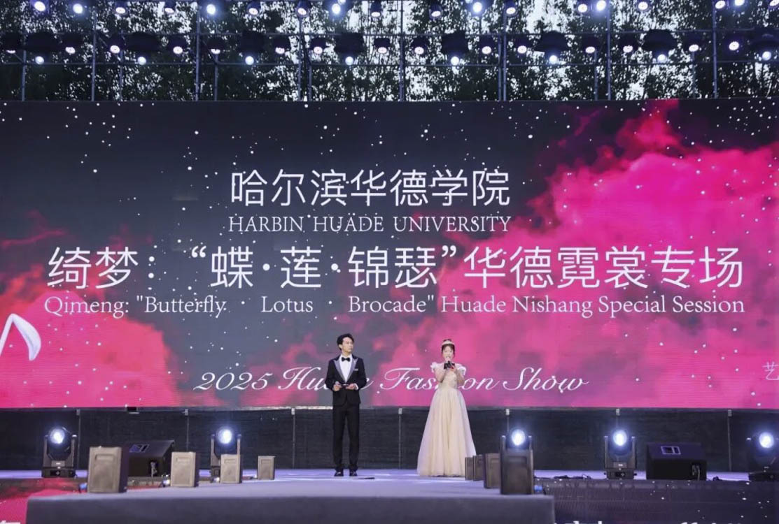 9月17日,哈尔滨华德学院校园内华灯璀璨,霓裳翩跹,华德霓裳专场以“蝶・莲・锦瑟”三大主题篇章为主线,为全场师生及嘉宾呈现了一场融合文化、艺术与时尚的视觉盛宴。