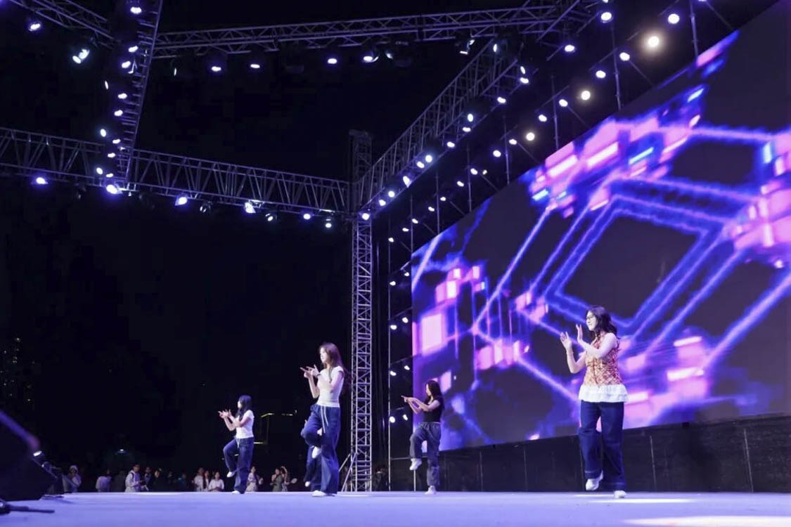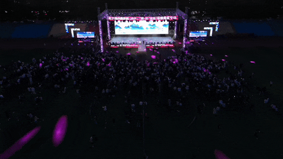 在全场的欢呼与期待中,电音派对正式引爆!荧光棒如潮水般涌动,身体随着强劲的节拍自由跃动,整个现场化作一片音乐的海洋。