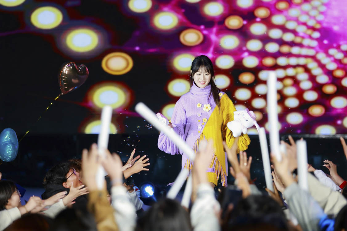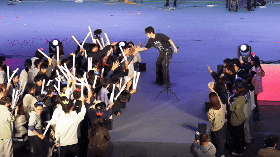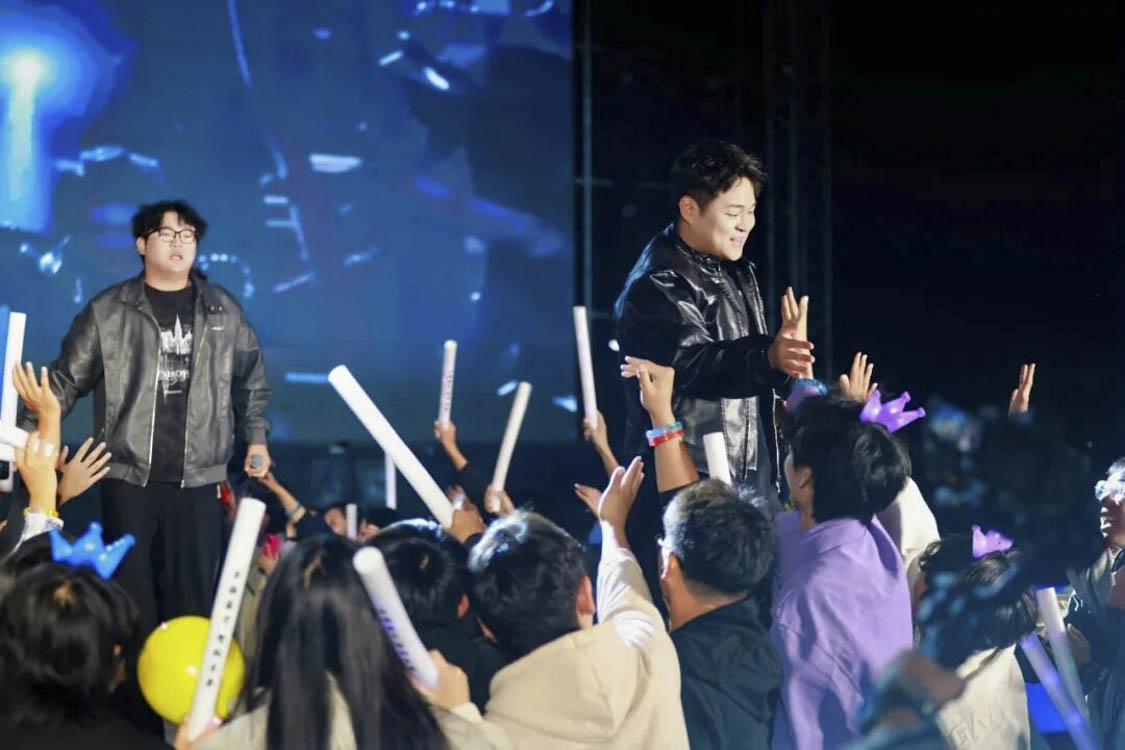 五位歌者并肩而立,声线温柔交织,观众随着节奏轻轻摇摆,空气中弥漫着纯净而浪漫的气息。荧光点点,宛若星河落人间,这一刻,青春仿佛被谱成了诗,温柔而明亮,恰是我们最动人的模样。
