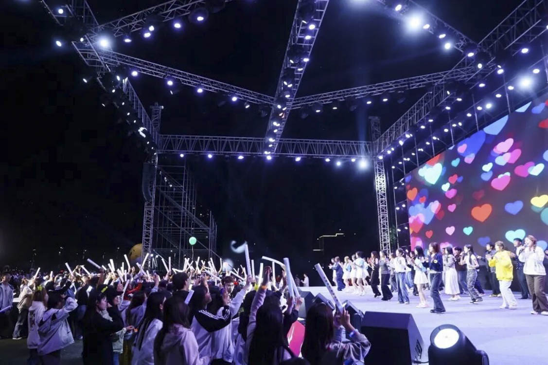 《想去海边》《公路之歌》两首金曲接连炸场,同学们用音乐点燃夜空,动感的节奏与冷烟花交织,氛围感拉满!