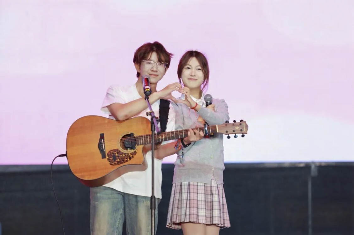 木吉他声轻柔响起,熟悉的旋律引发全场大合唱。弹唱组合默契配合,歌声温暖又真挚,舞台上下心意相通,温馨氛围弥漫整个会场。
