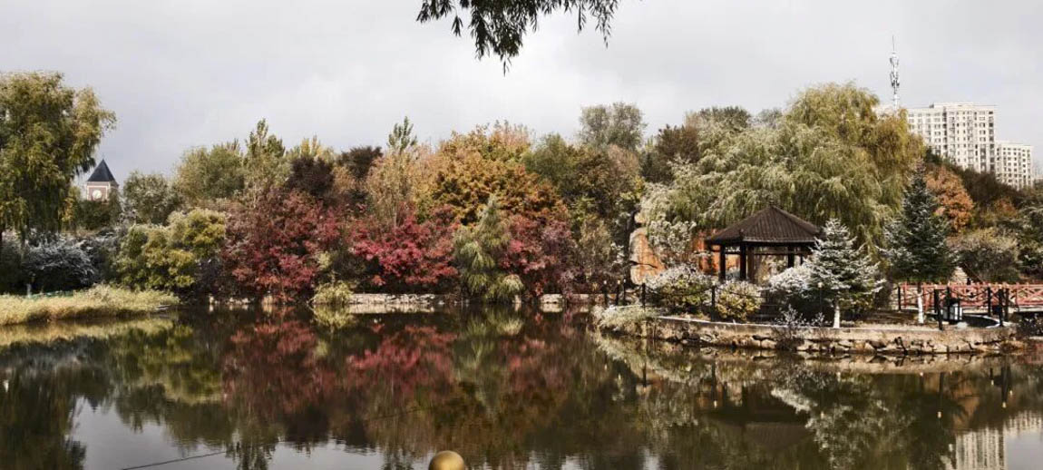 问渠湖畔,秋雪相拥成韵,是秋与雪的邂逅。红枫燃作星火,初雪轻覆如纱,古亭临波处,时光在这半秋半冬的交响里,为问渠湖的诗意深深停驻,在湖畔晕染成诗。时光也为这温柔驻足。