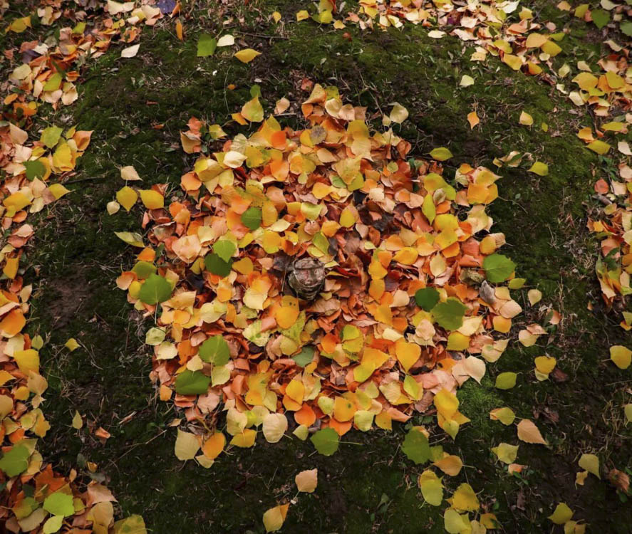 缤纷秋叶在苔藓底色上构筑艺术图腾,树桩为芯,以自然肌理与手工意趣,奏响秋日诗意与生命张力的双重乐章。