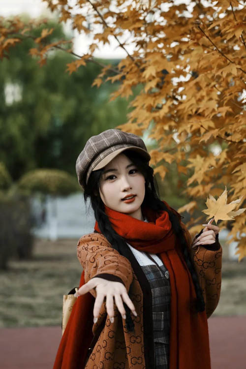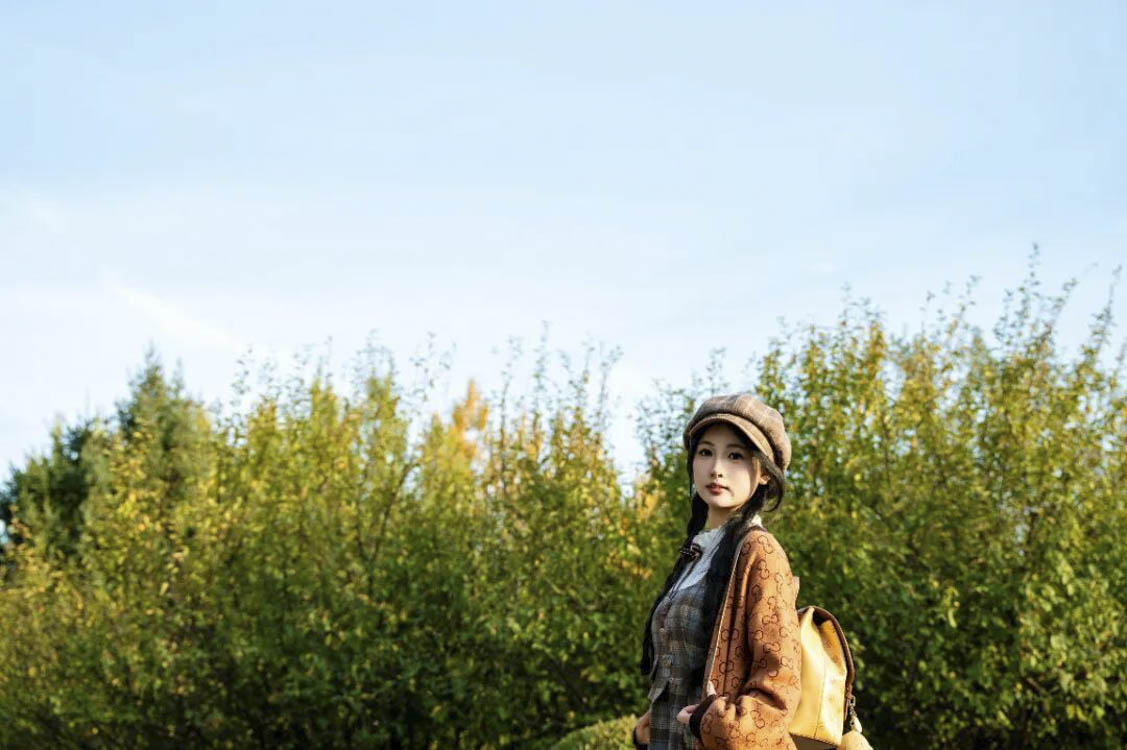 晴空之下,秋叶是写给青春的金色信笺。复古的穿搭点缀其间,人与景相互成全,将此刻定格为岁月里不朽的诗行。