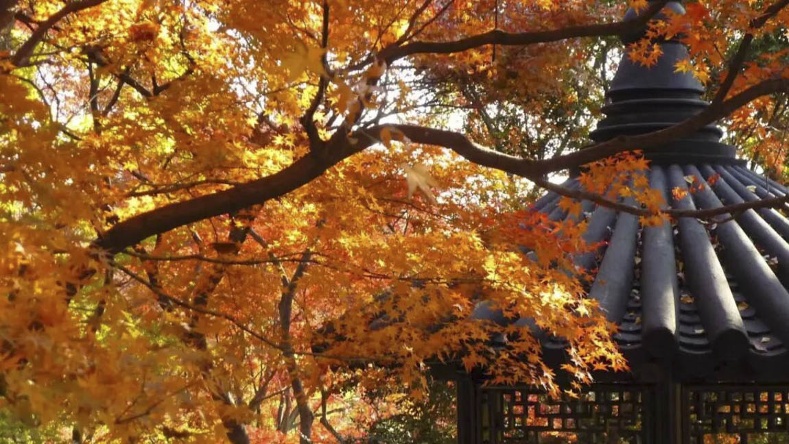 金枫与古亭撞色,油画的色调疯狂输出秋的浓烈。树叶的碎金光斑融入古亭深院锁清秋的幽寂。苏州入秋晚,闲暇时还有机会挽留枫叶的灵动。留园秋景尽显阳光沐浴枫叶的慵懒。
