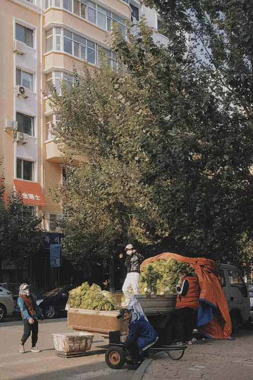囤秋菜是东北人冬季抵御季节更替的食物储备。深秋的街角,几位农户迎着落日余晖兜售白菜。举起相机时,他们面对镜头大大方方地笑了起来,这一幕的温暖,是秋日最治愈的能量。