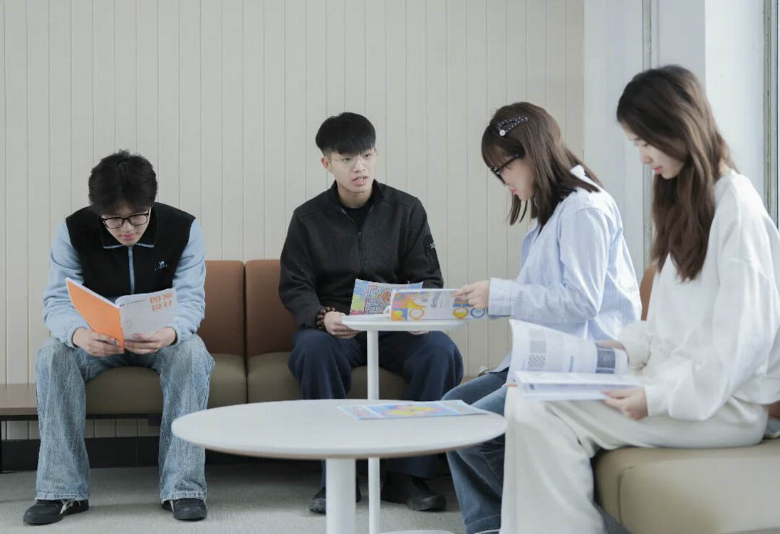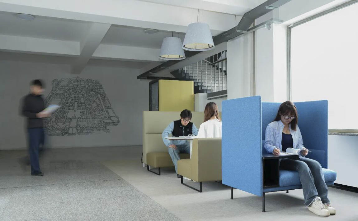 教育不再局限于课堂,校园每一处空间都被赋予育人使命。除了教室、图书馆、食堂,学生还能去哪里?课间的碎片时间,除了刷手机,还能做什么?空间可以怎样影响人与人的连接?这些问题,最终落在了第一教学楼的走廊里、这些真正源自需求、高效落地的“下课来吧”。这里既是学子卸下疲惫的港湾,更是思想碰撞、灵感迸发的摇篮,让“以学生为中心”真正成为可触摸、可感知的空间温度。