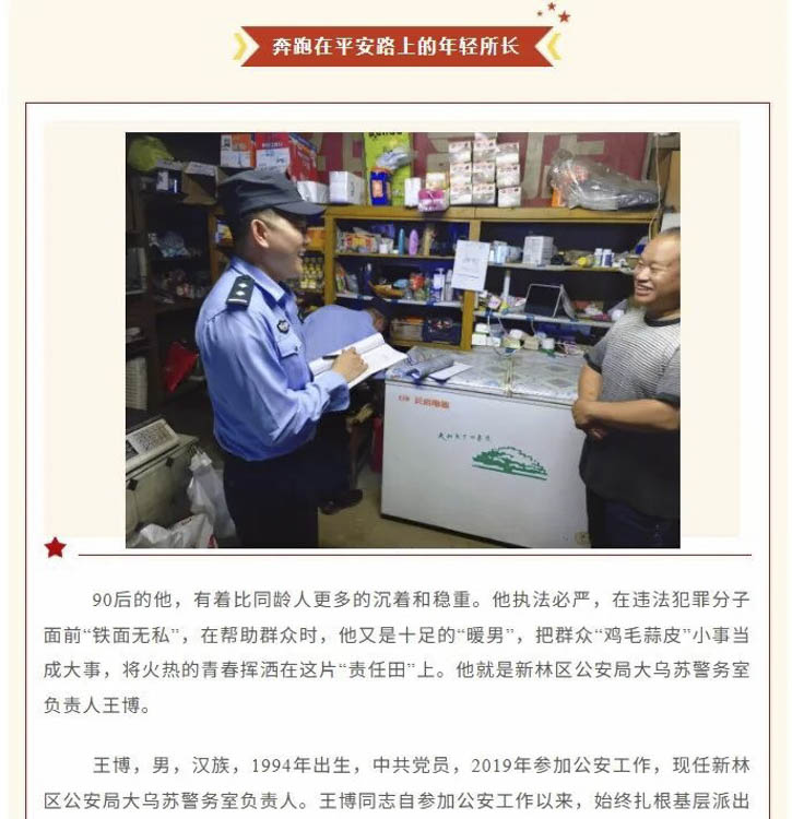 “王警官,我家屋顶漏雪!”“王警官,老张头又和他儿子吵翻了!”——群众口中的“小事”,在他这里都是“头等大事”。他曾深夜打着手电冲进山林,找回采山迷路的居民;也曾自掏腰包为精神障碍患者修好漏风的窗户。10面锦旗、3封感谢信背后,是老百姓一句朴实的评价:“这小伙子,心里装着咱。”