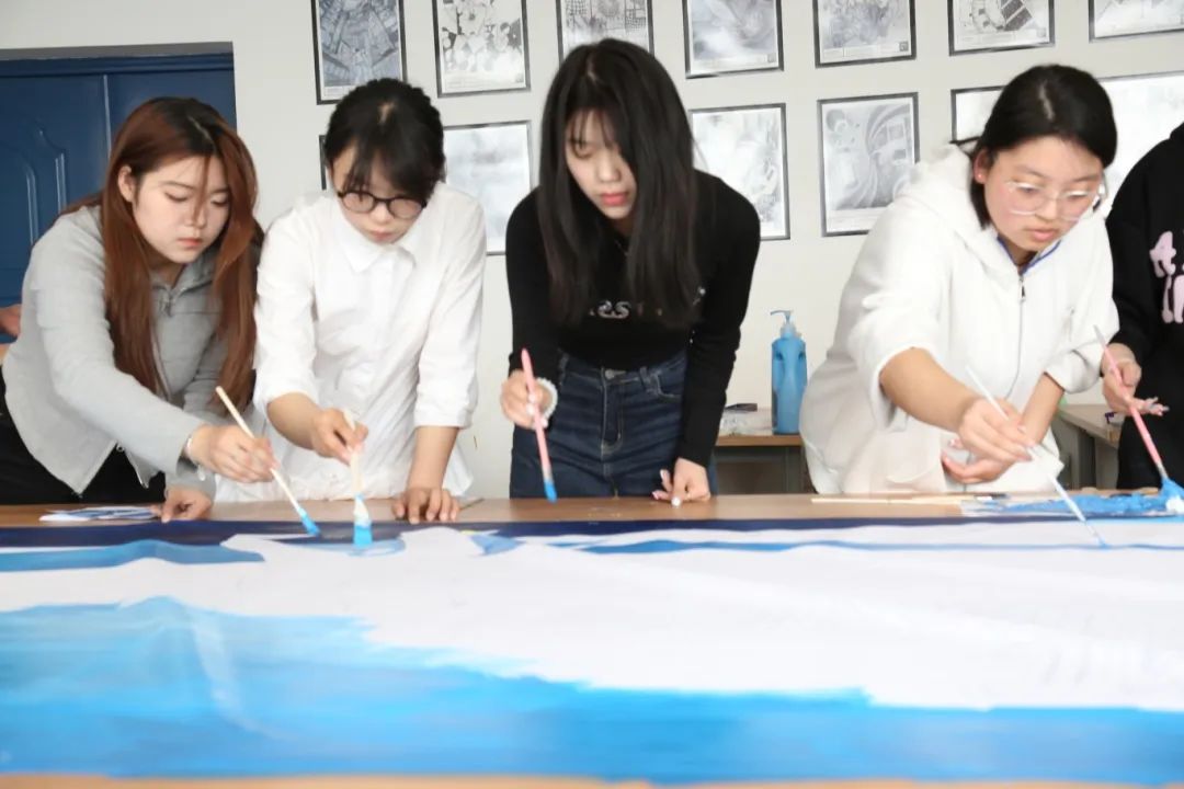 △绘画团队作画环节分工明确,笔触之间流露出细腻与生动,每一笔都洋溢着艺术学子对专业的自信,传递了华德学子对亚冬会的热爱与期待。