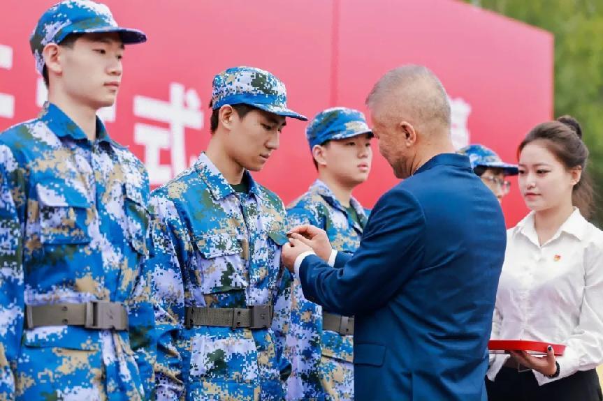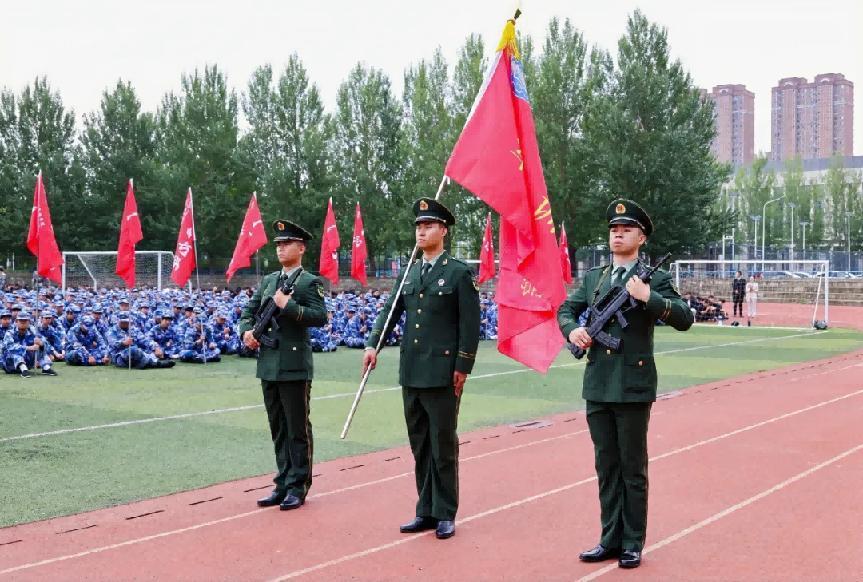 党委书记、政府督导专员白云龙向军训团授旗。旗帜是队伍的象征,是荣誉与使命的标志。接过团旗,就是接过了责任与担当。