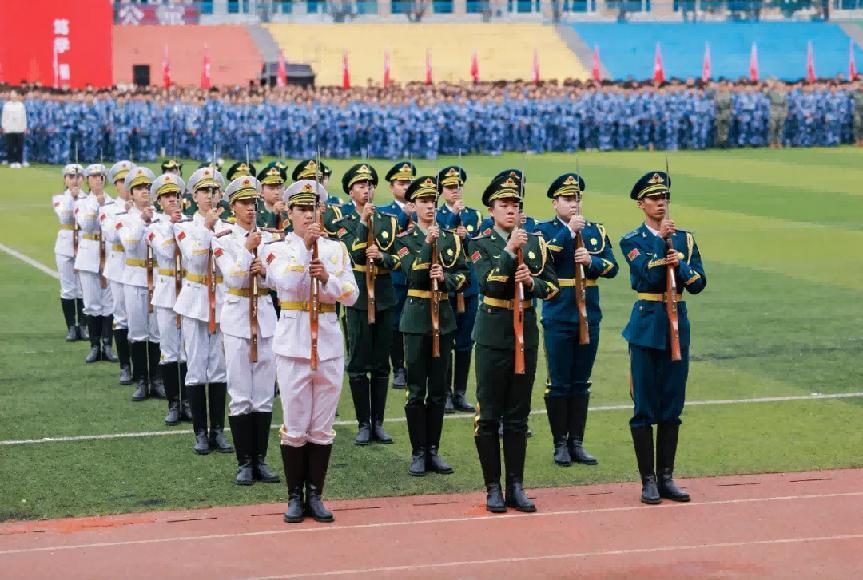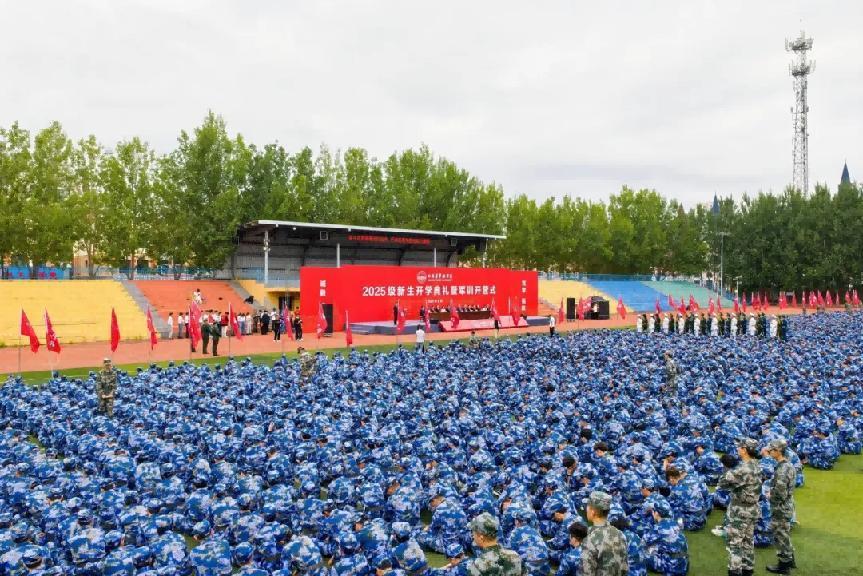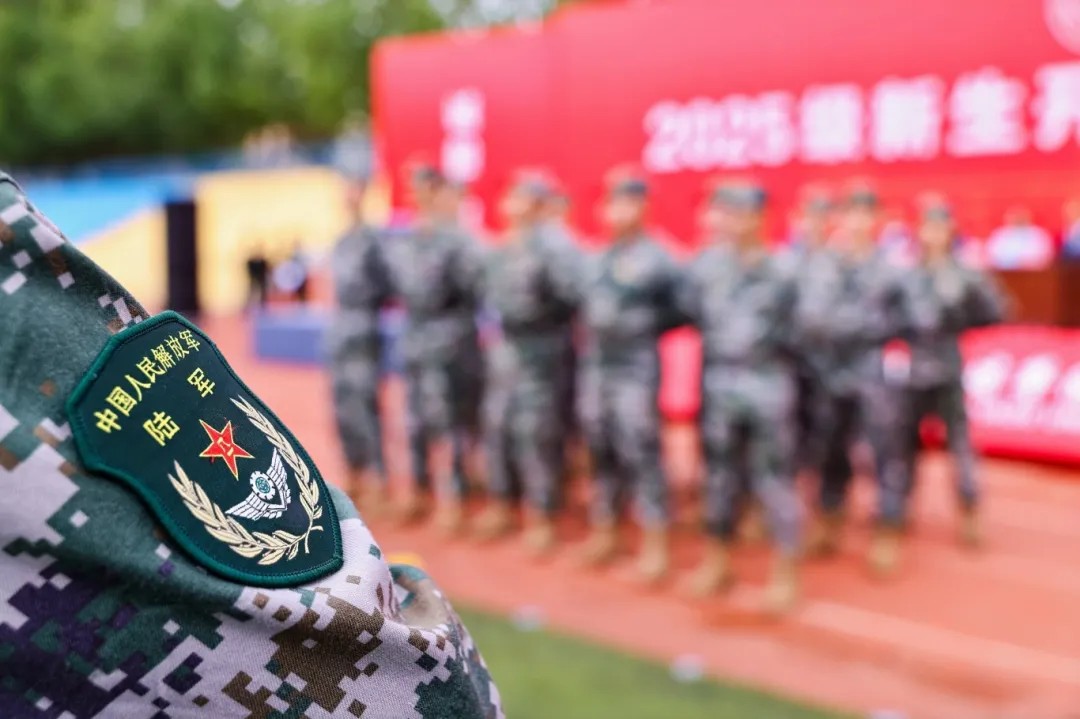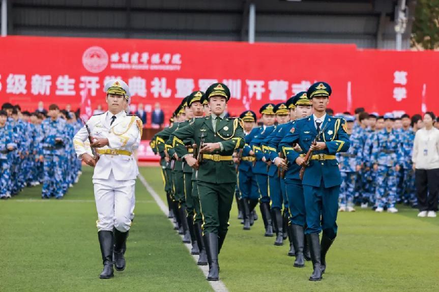 伴随着校长李长威教授宣布开营,2025级新生军事训练正式起航!