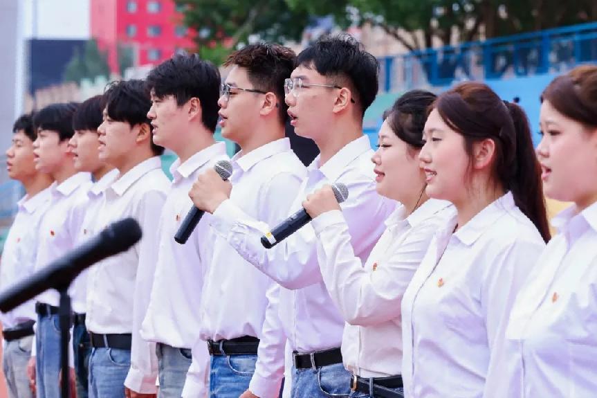 开学典礼结束后,军训开营式在石榴籽合唱团激昂的《祖国不会忘记》歌声中正式开始。