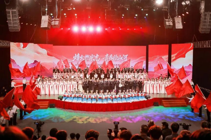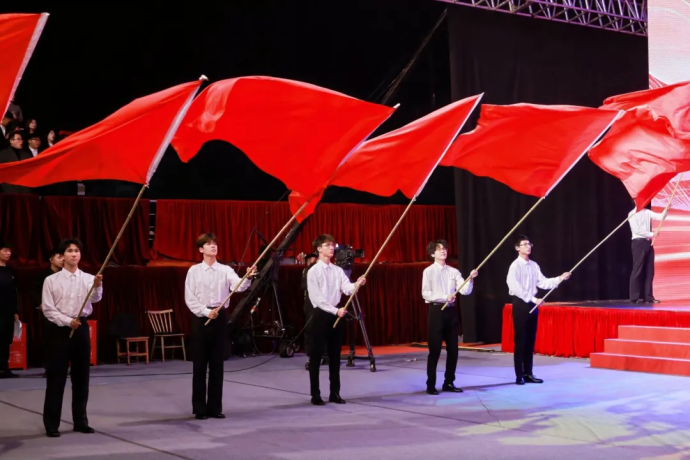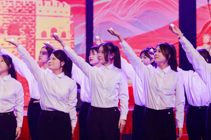 演出现场,华德学子用青春之声唱出了对先辈的敬意,也唱响了新时代青年的担当。 演出接近尾声,在《歌唱祖国》铿锵有力的旋律中,40名华德学子挥舞红旗,将演出推向高潮。 他们的表演不仅是一次艺术的展示,更是一次精神的传承。展望未来,哈尔滨华德学院将继续深耕文化育人沃土,把红色基因传承融入育人全过程。学校将依托现有的83个学生社团和丰富的文化活动,打造更多具有龙江特色的文化精品,让“舞台上的思政课”更加生动鲜活,培育更多兼具专业素养与家国情怀的优秀人才。