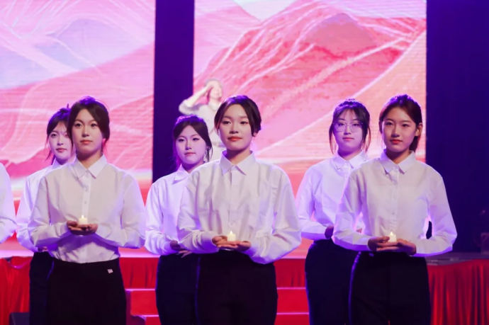 “山河无恙,烟火寻常,可是你如愿的眺望...”当熟悉的旋律在演播大厅响起, 学子们以层层递进的情感表达,将抗联战士的坚定信念与新时代青年的责任担当紧密相连。 歌声从轻柔诉说逐渐转向激昂澎湃,配合精心设计的舞台调度,让舞台与观众席联结成交相辉映的互动空间,形成了强烈的视觉与情感冲击。现场观众注意到, 当唱到“而我将梦你所梦的团圆”时,学子们手执星星灯,在黑暗中点亮一片星海,象征着精神的传承与时代的接力。 这一精心设计的表演环节,让历史的厚重与青春的活力在舞台上完美交融。不少观众在演出后表示,这个节目让他们“看到了红色基因在新时代的生动延续”,更有年轻学生在直播过程中留言互动:“终于理解了什么叫‘小我融入大我’,华德学院的表演让我对抗联精神有了全新的认识。”