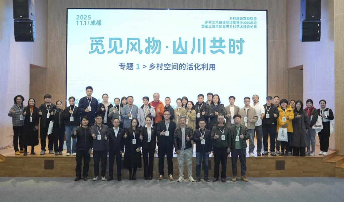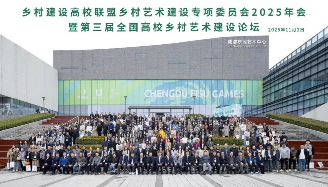 2025年11月1日,由乡村建设高校联盟主办,乡村建设高校联盟乡村艺术建设专项委员会、清华大学美术学院、成都大学中国-东盟艺术学院美术与设计学院联合承办的“全国乡村建设高校联盟乡村艺术建设专项委员会2025年会暨第三届全国高校乡村艺术建设论坛”隆重举行。本届大会以“觅见风物 山川共时”为主题,汇聚了来自清华大学美术学院、中央美术学院、中国美术学院、东北农业大学、哈尔滨师范大学等全国56所高校的精英团队。哈尔滨华德学院乡村振兴设计产业学院学术顾问张红松、执行院长葛长华应邀出席本次学术盛会。