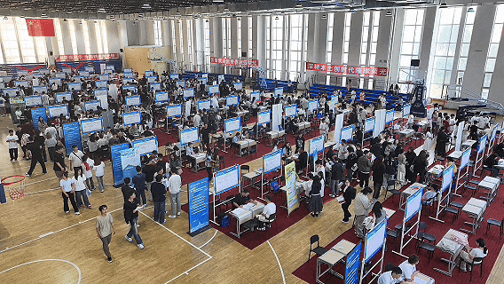 △哈尔滨华德学院2025年秋季双选会现场,140余家知名企业带来5000余个优质岗位,千余名毕业生累计投递简历6000份