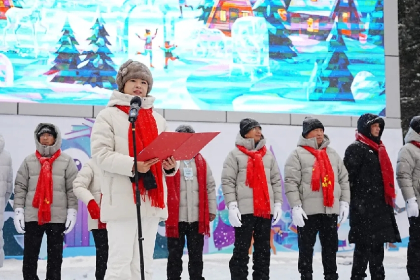 张艳副校长代表第六届“华德杯”全国专业冰雕艺术展主办方在致辞中感谢伊春森工集团领导及汤旺河林业局公司领导对艺术展的鼎力支持和辛苦付出,对来自全国各高校及专业团队的冰雪艺术家们雕琢出匠心独具、巧夺天工的冰雪艺术作品表示祝贺。同时她强调,哈尔滨华德学院始终致力于将人才培养、艺术创作与地方经济社会发展需求紧密结合。通过承办“华德杯”全国专业冰雕艺术展,搭建一个“冰雪艺术+森林旅游+文化传承”的创新平台,锻炼师生的专业实践能力的同时以艺术创造力赋能汤旺河冰雪旅游品牌建设,探索出一条“以赛促建、以展兴旅”的校地共赢路径。