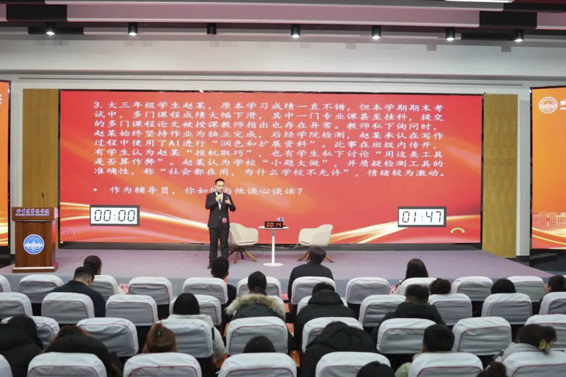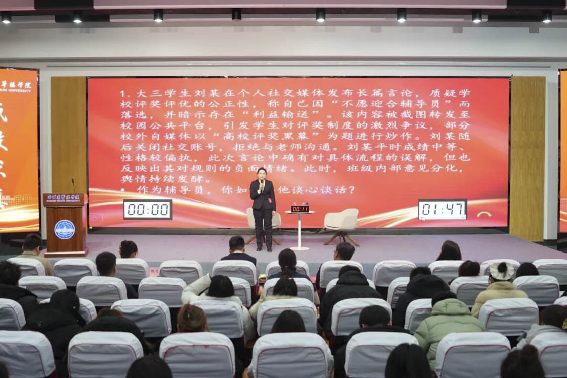 本次大赛不仅是对辅导员专业素养与育人能力的一次集中检阅,更是学校扎实推进思想政治工作、筑牢育人阵地的重要体现。赛事紧扣“以赛促学、以赛促建、以赛促专”的目标,将理论考核与实践演练深度融合,有效激发了辅导员队伍的内在动力与职业使命感。未来,学校将持续完善辅导员培养与发展体系,拓展专业化成长平台,引导全体辅导员坚守立德树人初心,提升育人本领,努力锻造一支信仰坚定、业务精湛、贴近学生的高素质思政工作队伍,为培养担当民族复兴大任的时代新人注入持久而坚实的力量。