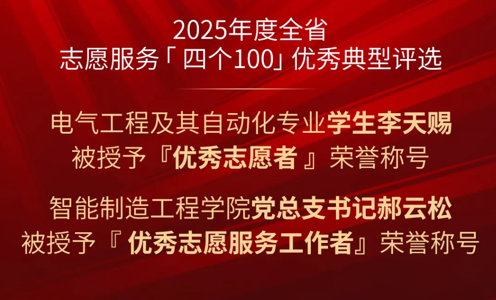近日, 黑龙江省委社会工作部公布了2025年度全省志愿服务“四个100”优秀典型名单。 哈尔滨华德学院电气工程及其自动化专业学生李天赐被授予 “优秀志愿者”荣誉称号,智能制造工程学院党总支书记郝云松被授予“优秀志愿服务工作者”荣誉 称号。在本年度评选中, 哈尔滨华德学院是团市属高校中唯一获评单位,实现了志愿服务领域的又一个新突破。