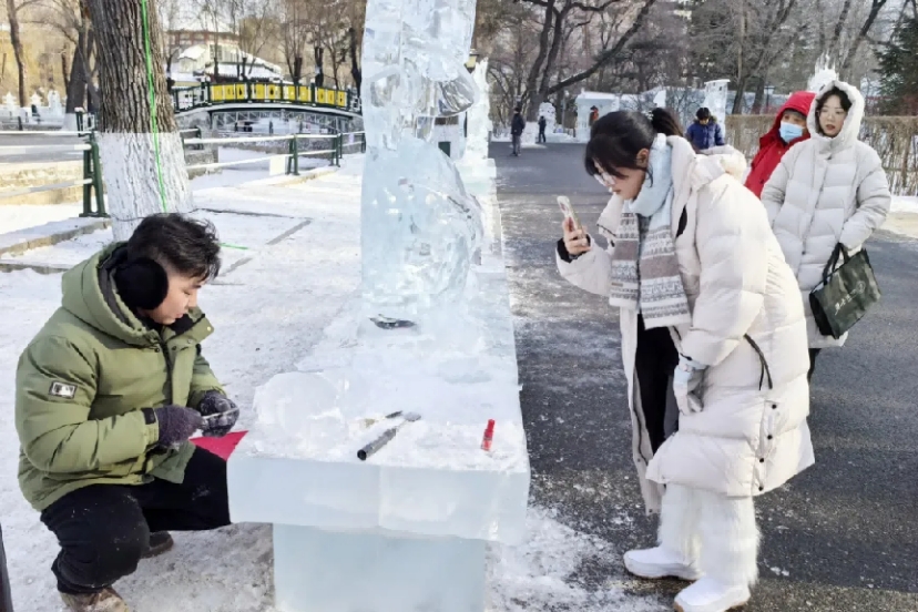 冰雕鸽子火出圈!哈尔滨华德学院在兆麟公园开讲“冰雪公开课”