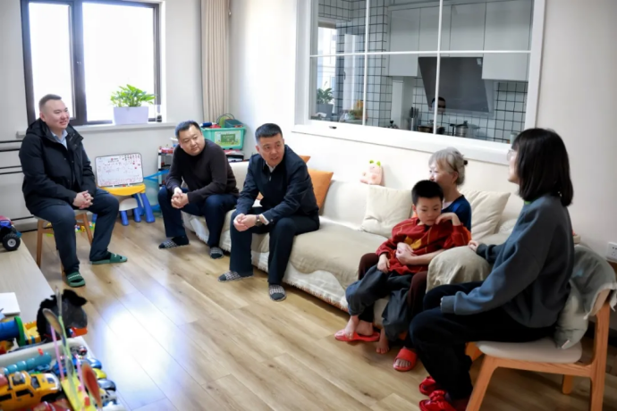 教育的温度,根植于对“教育者”本身的全然看见与深刻理解。 学校的关怀,精准地投向那些在生活重担下依然挺拔的身影,也温柔地映照在他们身后默默支撑的家庭。在学校采供中心李典泽老师家中,李长威校长、李斌副校长共同聆听了一段励志故事: 在家人的全力支持下,心无旁骛兼顾家庭与事业,交上了连续三年绩优的答卷。 “学校的记挂,让我新的一年更有干劲儿。”而这份“被看见”的尊重,同样 被张艳副校长、校长助理朱斌海教授传递到了 电子信息工程专业副主任郭宏老师的家中,他在照料父亲与带领团队夺取教学大赛佳绩之间,找到了不易却亮眼的平衡。