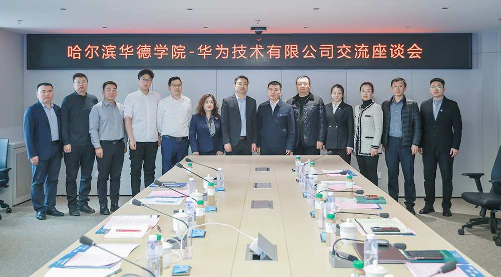 3月3日, 华为技术有限公司黑龙江代表处云计算业务总经理李西北一行到访哈尔滨华德学院, 双方就深化校企合作,推进产教融合进行交流洽谈。 校长李长威,副校长李斌、张艳、魏可霏,校长助理兼教务处处长朱斌海及相关部门负责人参加交流洽谈。