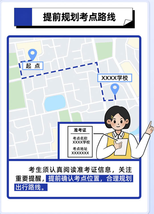 为确保考试期间校园秩序和考生安全,所有考生车辆严禁驶入校园,请您务必提前规划出行方式,强烈建议乘坐地铁或公交车等公共交通工具前往。建议您提前1小时到达考点,预留充足的入校查验及步行至考场的时间。从校门步行至考场楼大约需要10分钟。