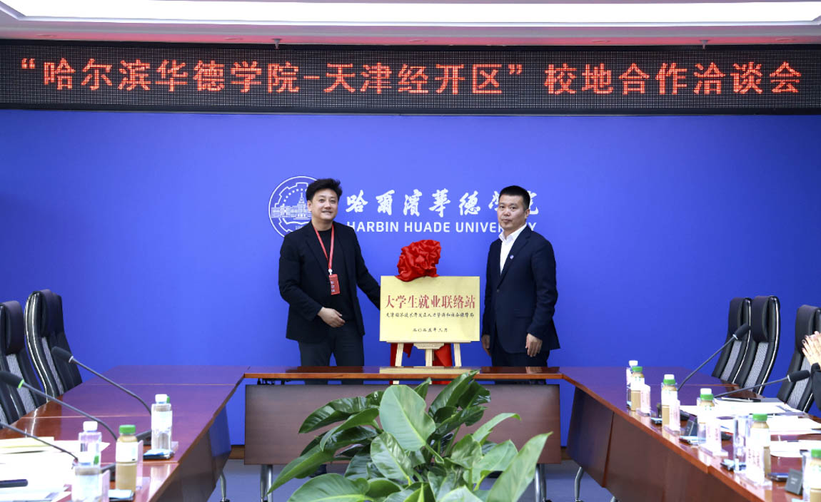 △ 哈尔滨华德学院与天津经开区签署校地合作协议,“大学生就业联络站”揭牌