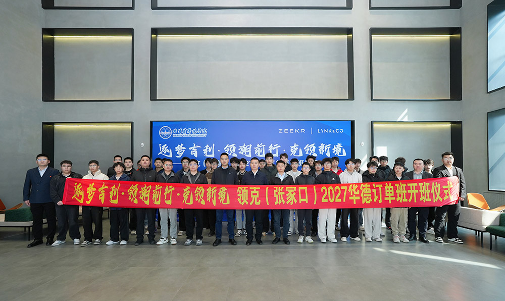 4月22日,哈尔滨华德学院与吉利领克汽车张家口基地共同举行“2027届工程师订单班开班仪式”。吉利集团人才经营总监刘瑜、领克汽车张家口工厂相关负责人,哈尔滨华德学院校长李长威、相关学院负责人及师生代表出席仪式。 经严格选拔,35名2027届优秀毕业生正式入选该订单班,成为校企联合重点培养的工程师人才。 这意味着,距离毕业还有一年的时间,他们已提前锁定了世界500强名企吉利领克的“准工程师”身份,踏上了通往企业基层管理岗位的快速通道。