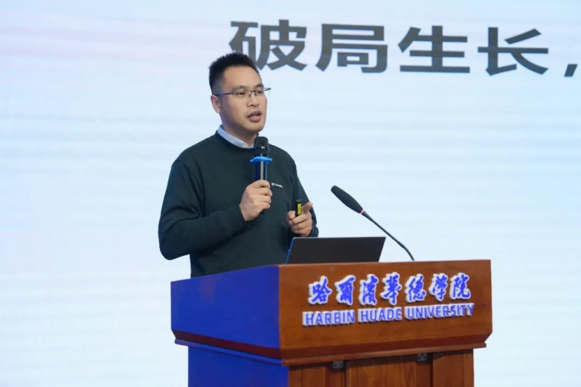 开班仪式后,哈尔滨华德学院首期“企业家讲坛”正式开讲。作为学校重点打造的育人品牌,讲坛聚焦产业前沿、汇聚行业智慧,旨在帮助学生明晰职业方向、提升综合素养。 吉利集团人才经营总监刘瑜应邀作为首讲嘉宾,以二十余年行业积淀带来主题分享 。他深入解读汽车产业智能化、电动化与全球化趋势,剖析企业对复合型基层管理人才的现实需求,系统介绍吉利人才培养体系、梯队建设路径及校企协同育人机制,结合领克工厂实践阐释成长路径,强调专业能力、管理思维、工匠精神与责任担当。他鼓励同学们勤学笃行、主动对接产业变革,快速成长为推动企业高质量发展的中坚力量。现场师生反响热烈,深受启发。
