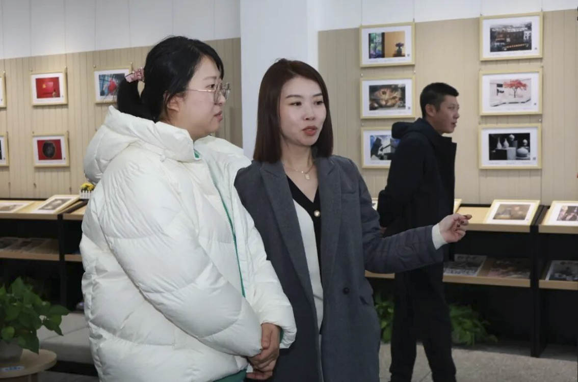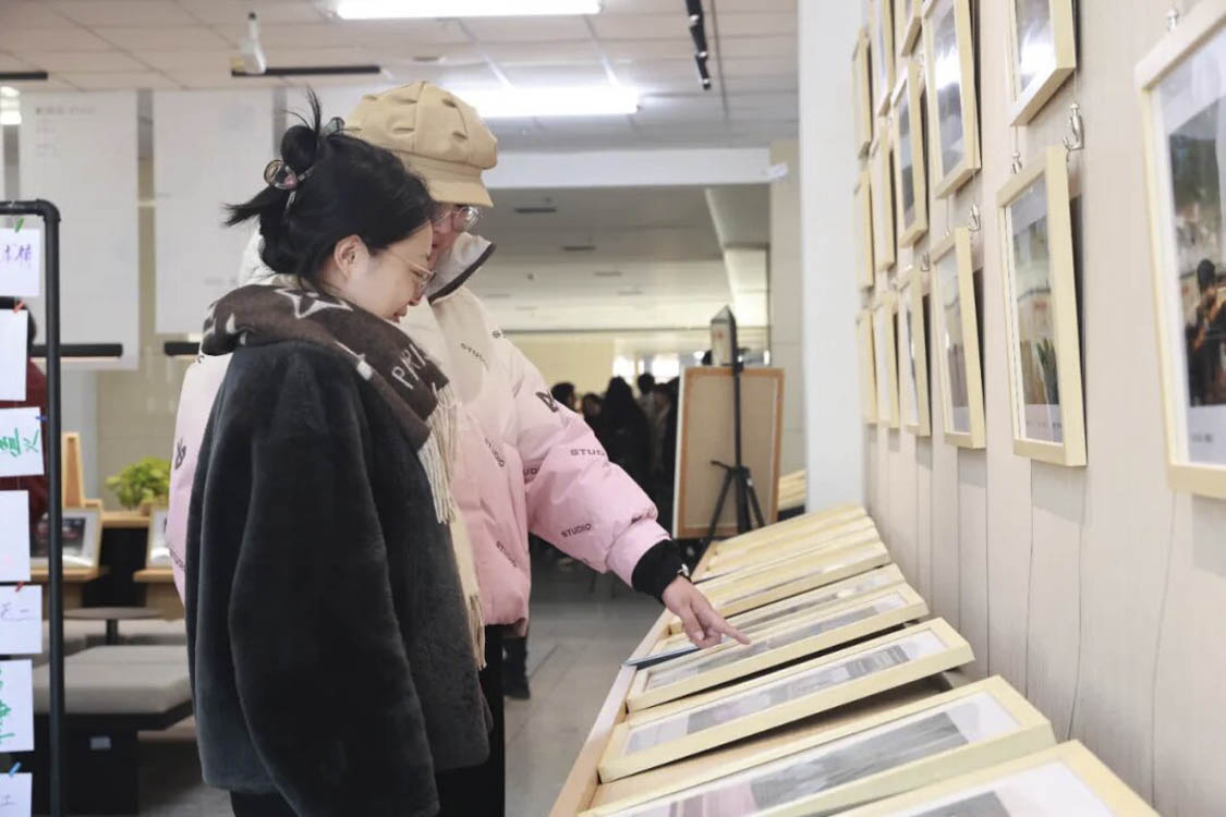 随后,在场领导、教师与学生共同前往图书馆一楼西侧展区,开启集体参观活动。本次成果展集中呈现了数字媒体艺术专业与影视摄影与制作专业学生的千张摄影作品及百部优秀数字短片,作品主题多元丰富,涵盖展馆陈列、传统建筑、人文景观等多个领域:既有上海外滩百年建筑的线条韵律,也有苏州湾数字艺术馆传统纹样的现代演绎,更有杭州国家版本馆承载的深厚文化底蕴,每一幅作品都展现着学子们的专业思考与文化感悟。