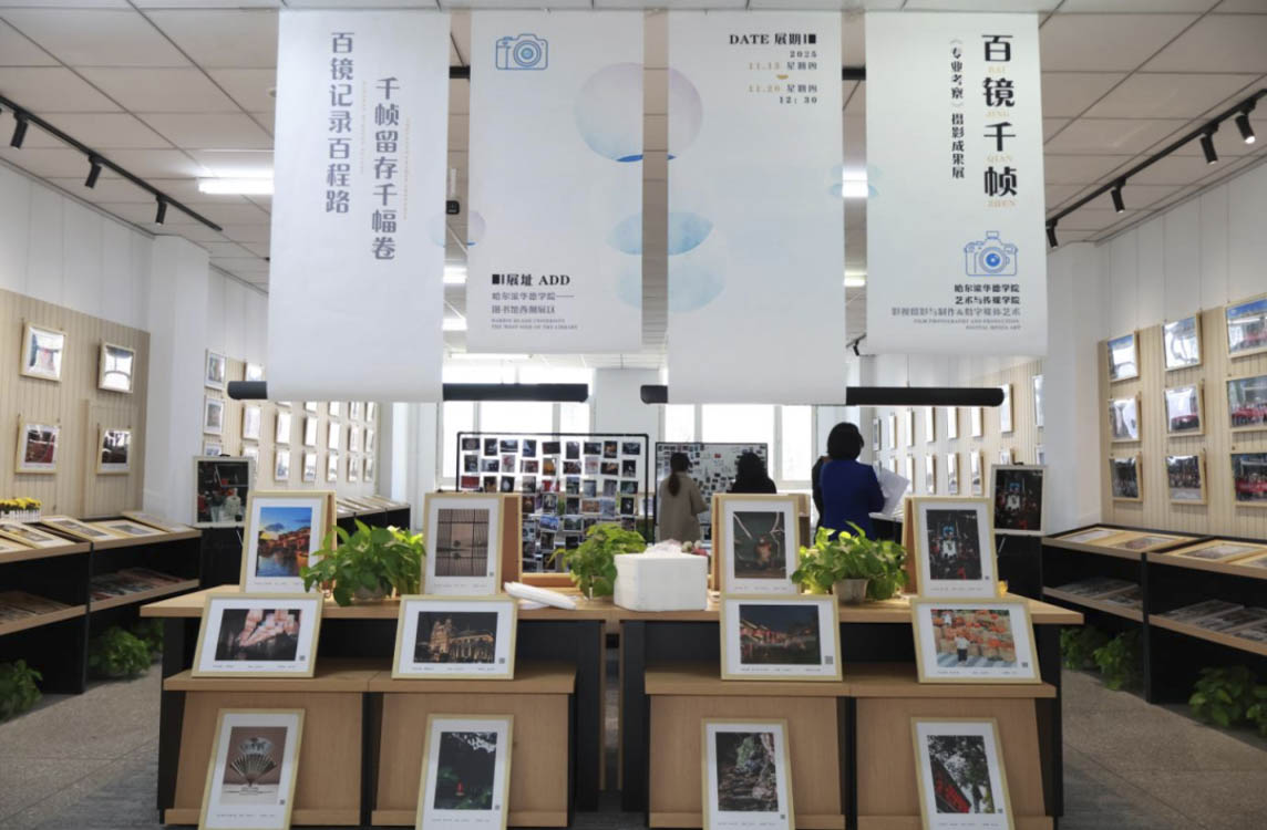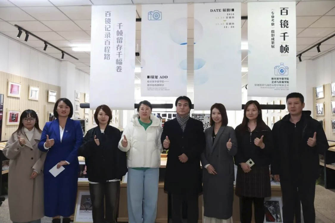 为提升教学质量、深耕应用型人才培养,11月13日,哈尔滨华德学院艺术与传媒学院传媒系“百镜千帧”《专业考察》课程教学成果展在图书馆一楼西侧展区正式拉开帷幕。本次开幕式由传媒系教师韩秀萍主持,哈尔滨华德学院艺术与传媒学院名誉院长、设计学科带头人、博士生导师张红松教授,教务处副处长衣博,艺术与传媒学院负责人范薇,艺术与传媒学院副院长徐珊珊,学生发展中心主任王亮,以及艺术与传媒学院各系主任、学生发展中心各领导莅临现场,共同见证这场融合专业实践与文化探索的视觉盛宴。