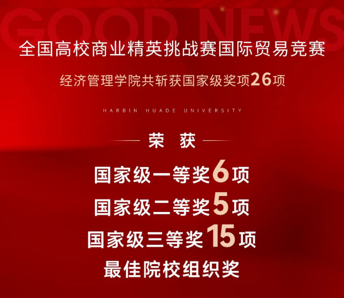 在2025年11月19日落幕的全国高校商业精英挑战赛国际贸易竞赛中,哈尔滨华德学院经济管理学院表现卓越,共斩获国家级奖项26项,包括一等奖6项、二等奖5项、三等奖15项,并荣获“最佳院校组织奖”。该赛事由中国国际贸易促进委员会商业行业委员会主办,自2017年起已连续举办九届,并被纳入中国高等教育学会学科竞赛排行榜目录,是我国国际经贸教育领域一项具有广泛影响力的品牌赛事。