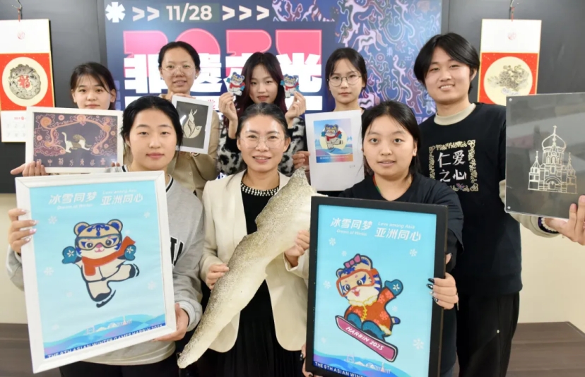 △社团师生用精致的鱼皮画作品献礼亚冬会