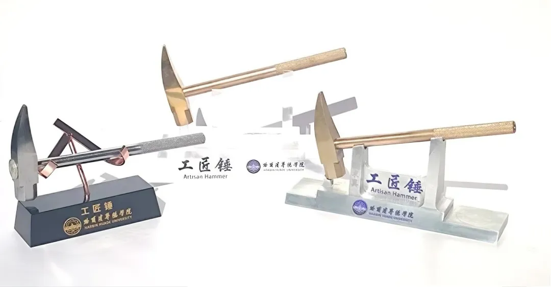 “作为一名工科生,你大学期间最珍贵的纪念品是什么?”是一本写满公式的笔记,一张泛黄的课程设计图?在哈尔滨华德学院,许多毕业生会不约而同地打开一个精致的礼盒, 从中取出一把沉甸甸的、刻着自己姓名与学号的金属锤子。 极具力量感的工艺外形棱角分明, 稳固的底座稳稳托住金属的厚重质地, 这,就是铭刻着华德工程师滚烫青春记忆的纪念摆件——工匠锤。