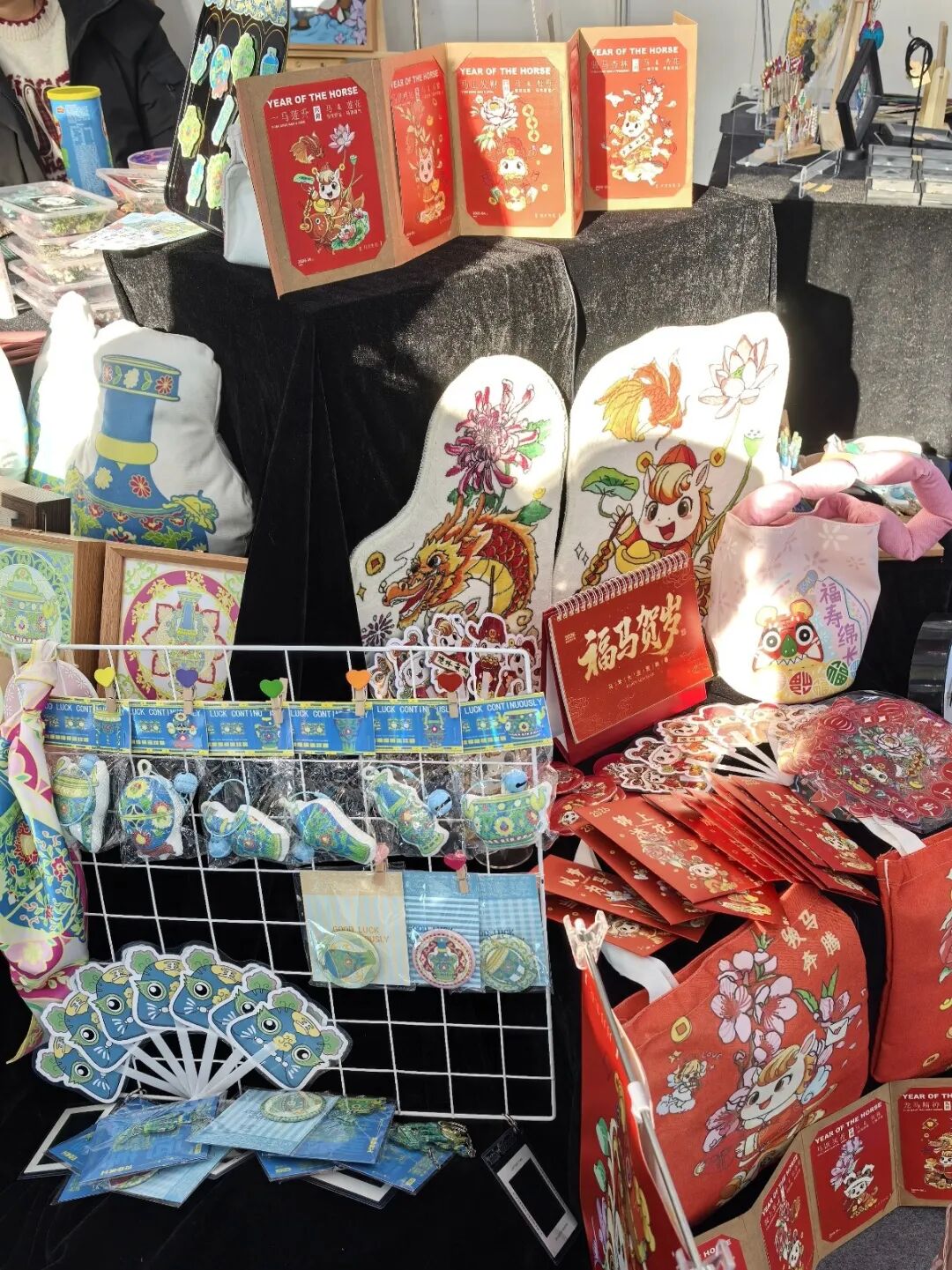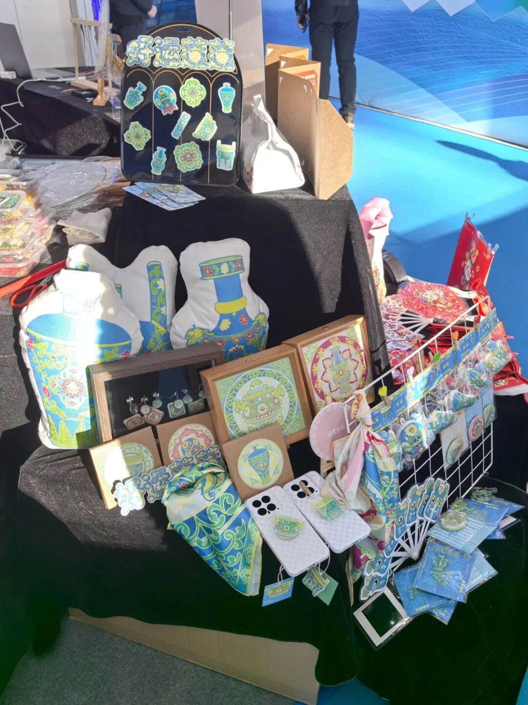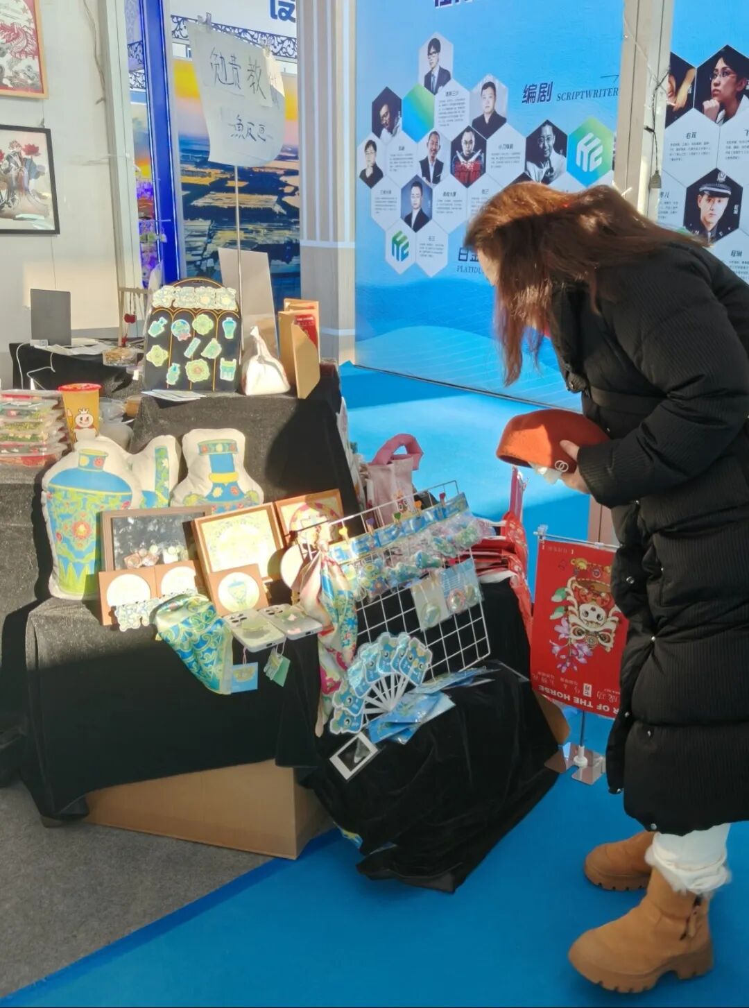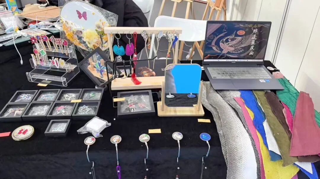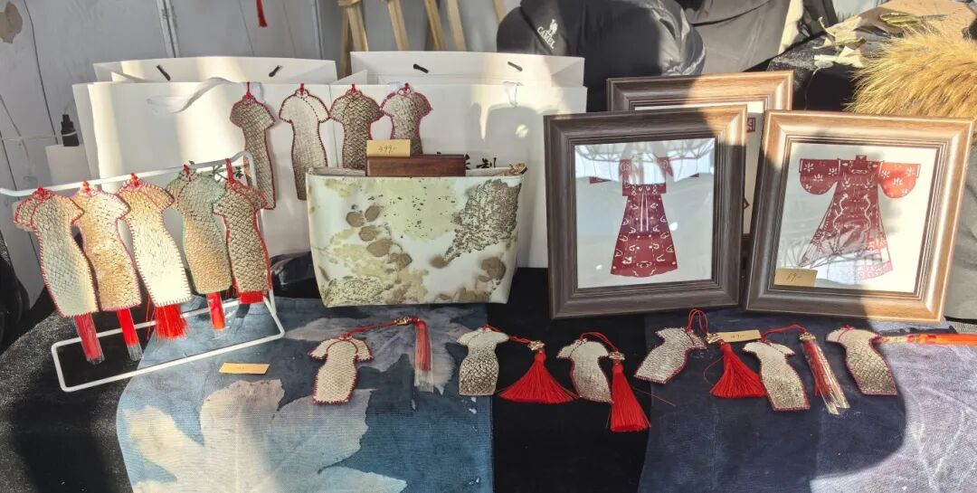 哈尔滨华德学院的展区位于本届博览会非遗与创意设计板块核心区域,集中展出了师生原创作品350余件。 其中包括视觉传达设计系毕业生创作的“马年十二花令”、“山西布老虎”等系列文创设计作品近200件,服装工程系“山长制”工作室开发的植物印染手包等特色产品,以及“艺媒匠心”团队精心制作的96件国家级非物质 文化遗产—— 赫哲族鱼皮制作技艺作品 。丰富多元的展品矩阵,生动诠释了学院“理论奠基、实践 驱动、传承与创新并重”的教学理念。